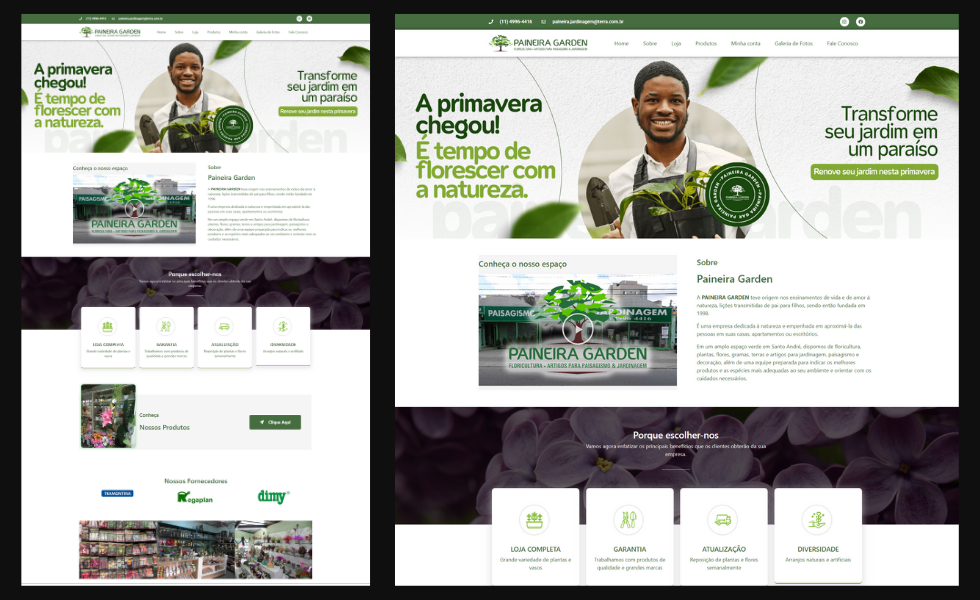 E-commerce completo para venda de plantas, flores, ferramentas e artigos de decoração para jardinagem, com entrega para toda a região.